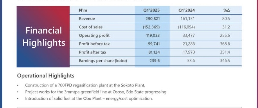 The company reported an 80.5% surge in revenue to N290.9 billion, a significant leap from N161.1 billion in the same period last year, signaling strong market demand and efficient execution.