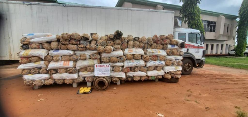 In Imo state, operatives on Sunday 15th October intercepted a Mercedes Benz container truck marked ABN 418 YN parked in an isolated area along Owerri – Onitsha expressway. A search of the abandoned truck led to the recovery of 168 bags of skunk weighing 1, 854 kilograms.