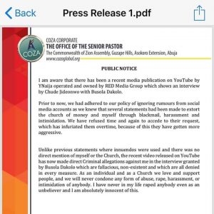 Fatoyinbo who is currently the most talked about individual on the social media space issues this response reproduced below.