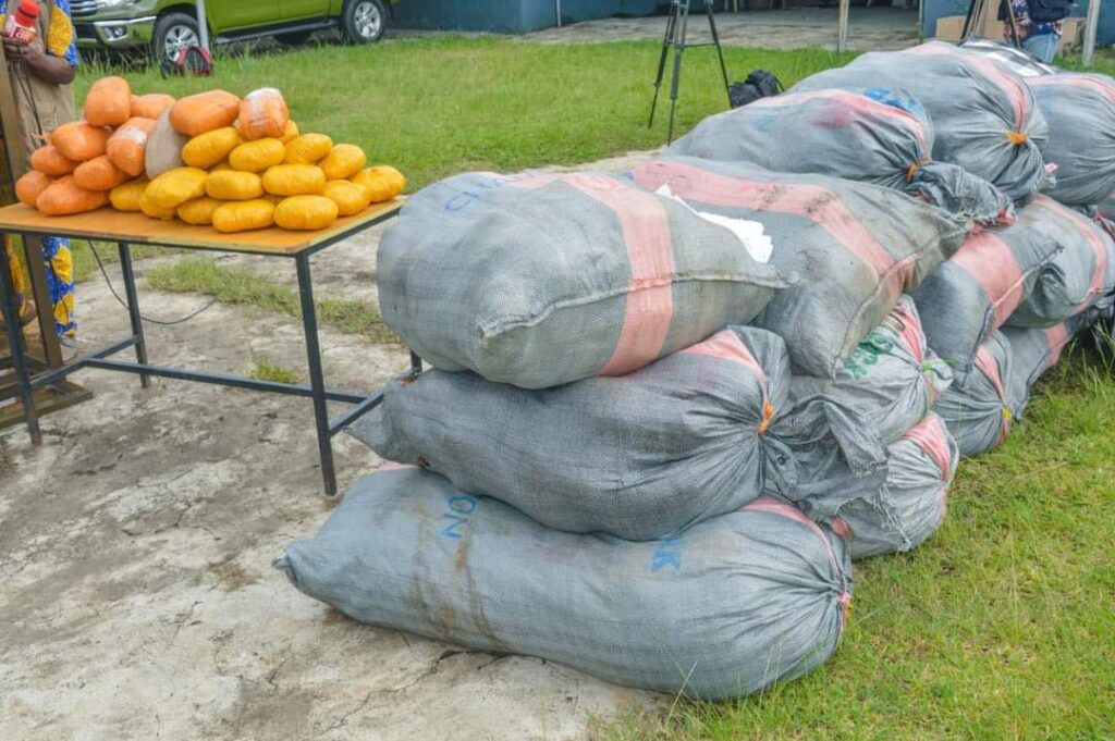“Upon receiving the information, the team moved towards the described location and intercepted one fibre boat fitted with a 200HP Yamaha Engine carrying sacks of the suspected items”, he added.