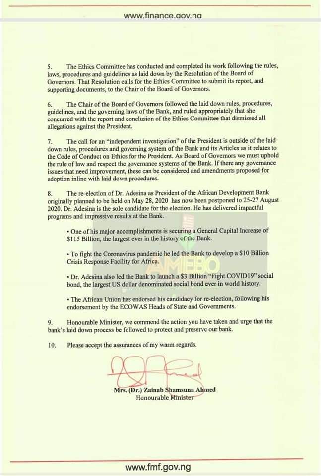 I hope that you are keeping well in the midst of the current COVID 19 pandemic that we are all going through in Africa and all over the world. I am writing to you in respect of developments at the African Development Bank.