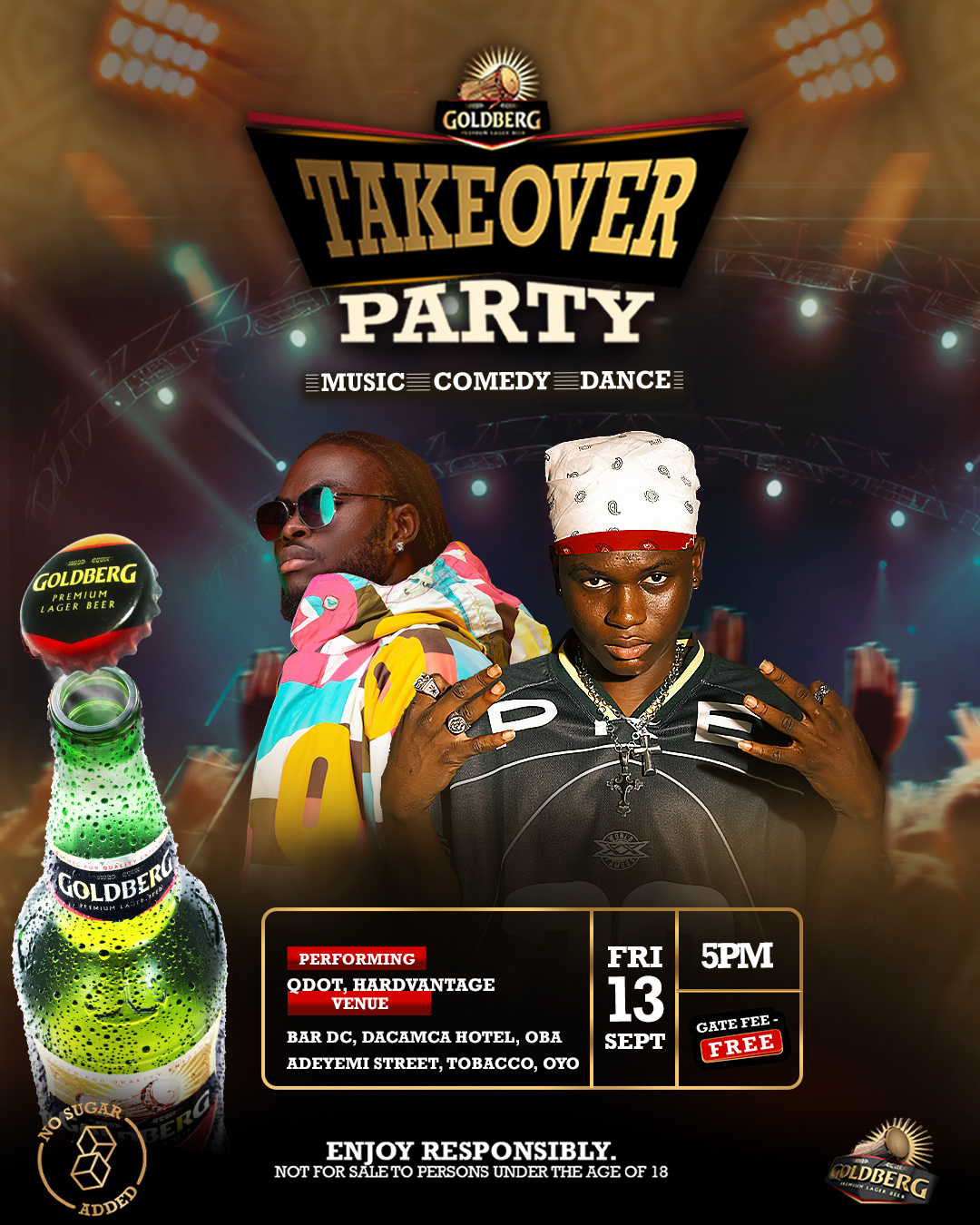 Hey Weekenders! It’s about to go down as Goldberg Lager Beer brings its highly anticipated TakeOver Party to Oyo. Get ready for an epic night of music and entertainment in Oyo, where the stage is set for an unforgettable fun, excitement, and enjoyment made different !