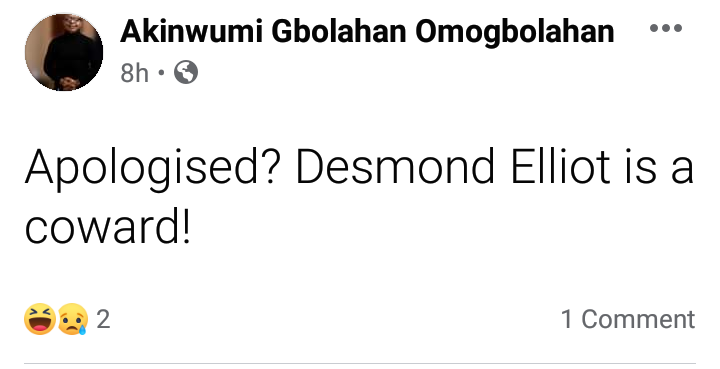 Details: Desmond Elliot “Loses Home & Abroad” As Angst Against Calling Youths “Children” Rages On