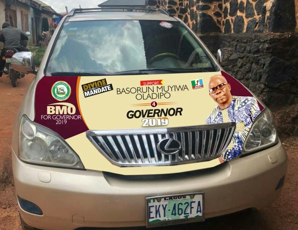 Sources disclosed the aspirant who has adopted the acronym BMO just rolled out branded vehicles proclaiming his gubernatorial ambition.