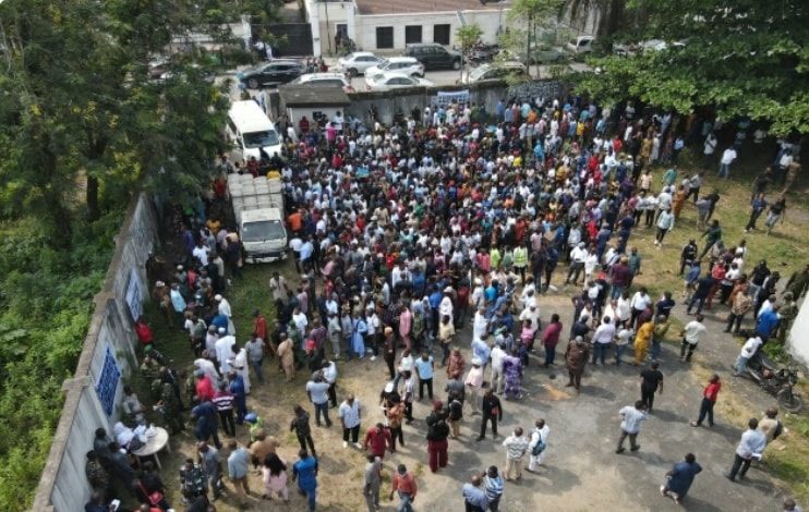 In Abuja, as early as 8am, hundreds of people had gathered in front of Car Park ‘A’ gate of the 5 Fomella Street, Wuse 2, Office of the Commission, to view slots of 35 items available for auction a.