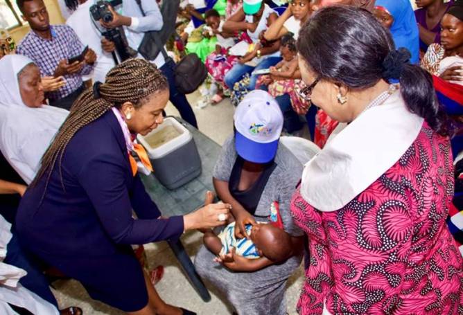 Speaking as the Guest of Honour, she compelled mothers to vaccinate their children, “As a mother of seven children, I have ensured that all of my children are vaccinated but. It is not enough to vaccinate your children alone, but you must tell your neighbours and your friends to bring their children for vaccination. If one child is affected, all of us are at risk. We will all be in danger. So, I thank you our dear mothers for coming out and for your patience, but there is still more work to be done. Be the vaccine ambassadors in your community.”