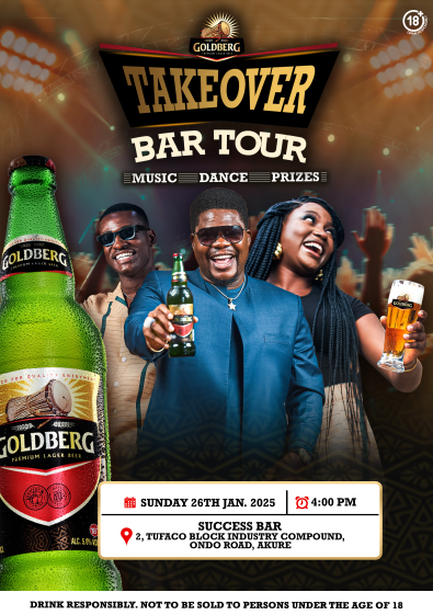 This weekend, Goldberg Premium Lager kicks off 2025 in style with its iconic TakeOver Bar Tour, making a highly anticipated stop in the vibrant city of Akure.