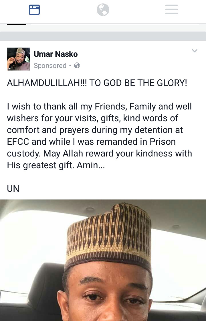 Guber aspirant, Umar Nasko is full of gratitude to family, friends and well wishers for their support during his spell in prison custody.