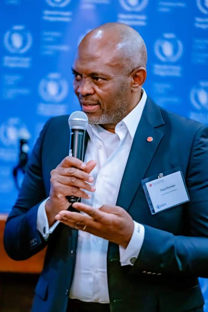 The founder of the Tony Elumelu Foundation (TEF), who hosted a reception with Cindy McCain, Executive Director of the World Food Programme (WFP), to highlight youth unemployment and hunger in Africa, traded his clean-shaven scalp and beards for sprouting greys.