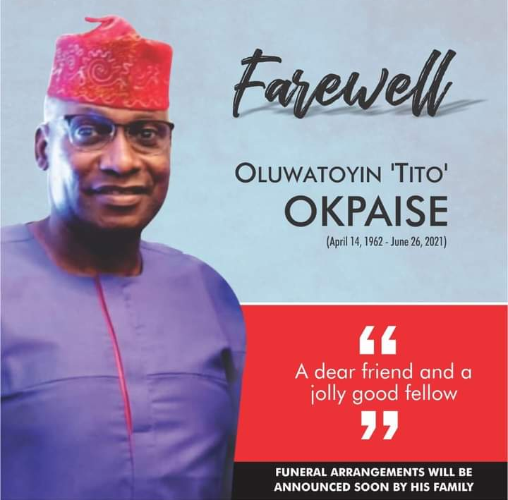 It is confirmed the good man and friend like no other to many, Oluwatoyin ‘Tito” Okpaise is no more.