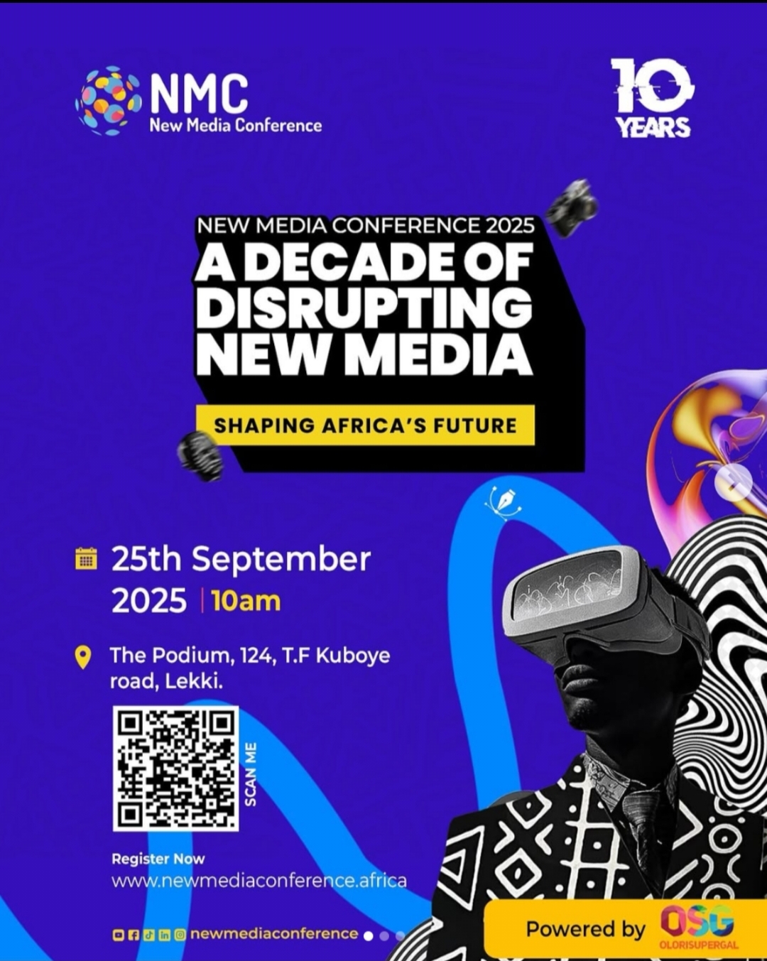 The New Media Conference (NMC) has announced a stellar lineup of speakers for its 10th anniversary edition, set to take place on Thursday, September 25, 2025, at The Podium, Lekki, Lagos.