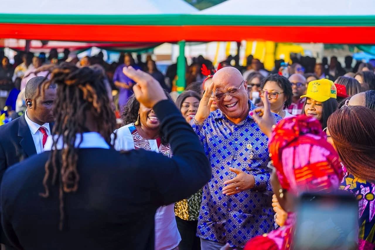 It was a lively and unique Christmas celebration in Ikot Ekpene Udo, Nsit Ubium Local Government Area, as Governor Umo Eno hosted guests to a special celebration flavoured with scintillating tunes by popular music artistes including Flavour and Disasta.