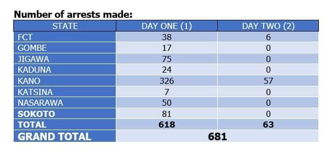 However, incidences of armed robbery, arson, mischief, looting of public institutions and private businesses, destructions of both public and private property were recorded during the protest. Arrests were made with respect to these criminal incidences and a number of recoveries made from the suspects while the protest was going on.