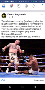 The Lovely Reactions As Nigerians Stand Firm With Anthony Joshua In World Boxing Title Defeat.