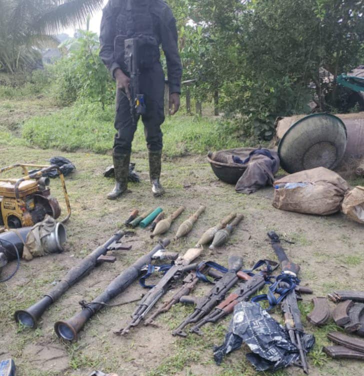 Troops of 5 Battalion operating under 16 Brigade, Nigerian Army, in a raid operation on Sunday 25 June 2023 at Azuzuama Community in Ijaw South Local Government Area of Bayelsa State have captured an armoury located in a Camp from where suspected unrepentant militants and illegal oil bunkerers carry out their nefarious activities.