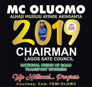 Everything point to a walkover by Musiliu Akinsanya more popularly known as MC Oluomo about twenty-four (24) hours to the election that determines who succeeds Tajudeen Agbede as the Chairman of the Lagos state chapter of the National Road Transport Workers.