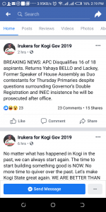 Emerging details have it that all other gubernatorial aspirants viewing for the All Progressives Congress Gubernatorlal ticket on Kogi state have been disqualified but for two people.