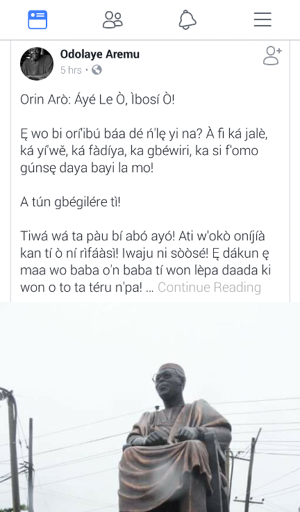 Since the observation of the fashion faux paus of a laced shoe on the agbada the statue of the late sage was decorated with came to fore, different opinions on what is wrong with structure – situated by LTV Complex Agindigbi – has remained unabated.