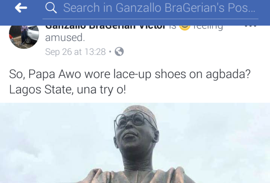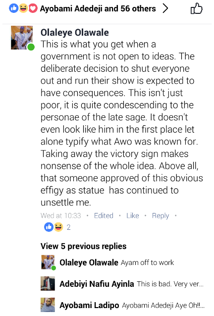 Governor of Lagos state, Akinwunmi Ambode continues to take huge hits for the new statue meant to further immortalize the late sage Obafemi Awolowo.