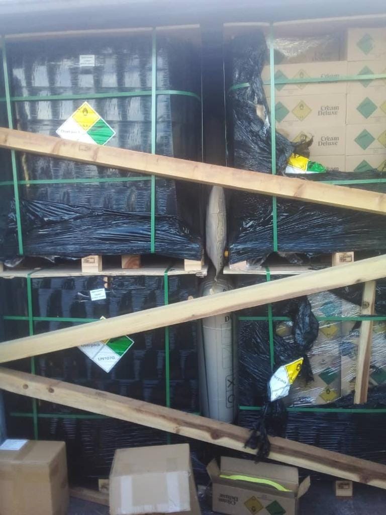 Following credible intelligence, NDLEA operatives at the Apapa seaport on Wednesday 12th July intercepted two containers marked MSKU 7626856 and MSKU 7689448 suspected to contain cartons of Nitrous oxide and plastic pressure release nozzles imported from China. As a result, a joint examination of the containers was carried out by NDLEA officers, men of the Customs Service and other stakeholders the following day, Thursday 13th July.