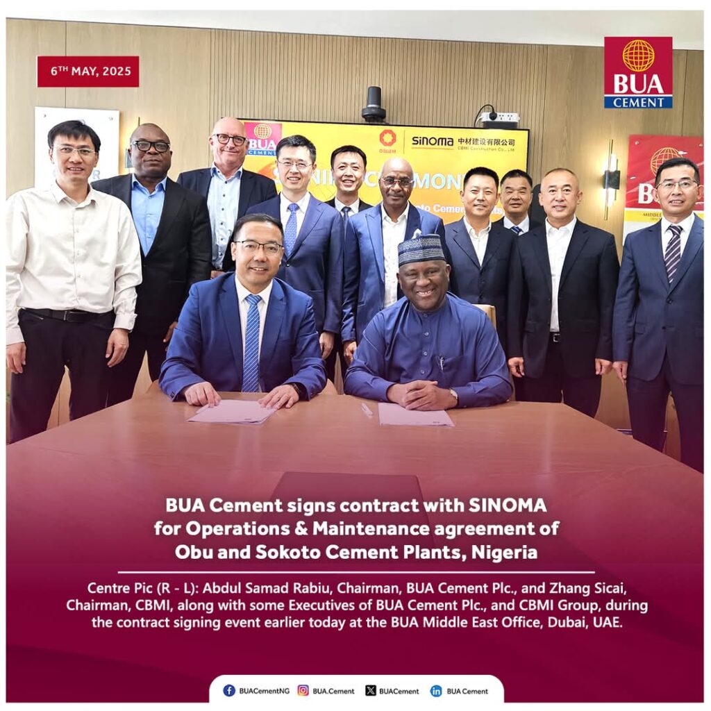 In a strategic move to boost Nigeria’s cement production capacity and industrial efficiency, BUA Cement Plc. has signed a landmark Operations & Maintenance (O&M) agreement with SINOMA’s subsidiary, CBMI Construction Co. Ltd., covering its Obu and Sokoto Cement Plants.