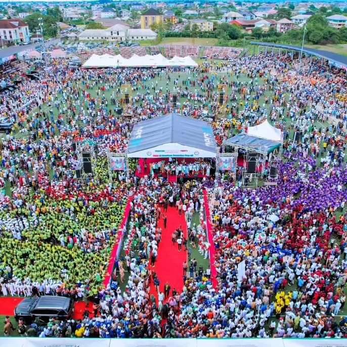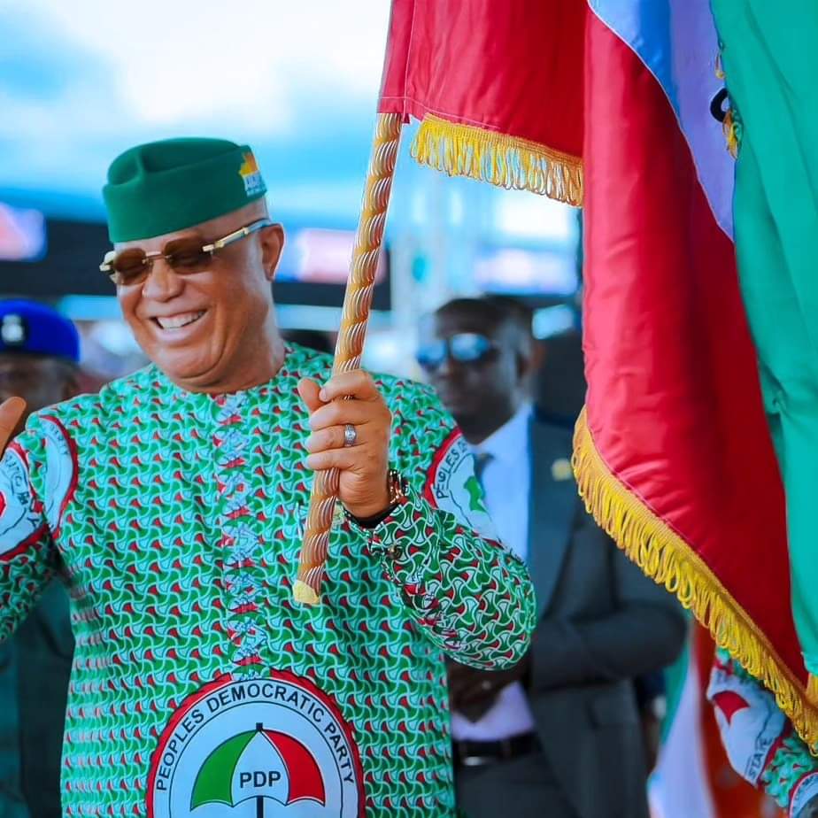 The Governor gave the charge at the flag off of the 2024 Local Government campaign and presentation of flags to the 31 Chairmanship Candidates at the Uyo Township Stadium, Uyo.