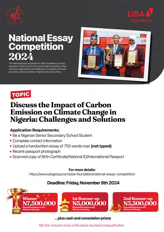 This year’s competition invites senior secondary school students to submit essays on the topic: “The Impact of Carbon Emission on Climate in Nigeria: Discuss the Challenges and Proffer Solutions.” This theme aligns with global climate change efforts, encouraging students to engage with one of the most pressing environmental challenges.