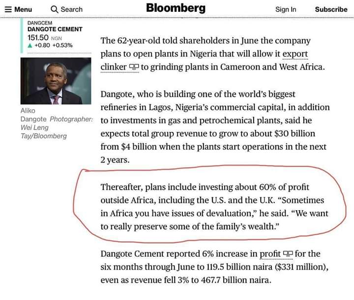 The Bloomberg claims Dangote wants to do this to “preserve some of the family’s wealth”.