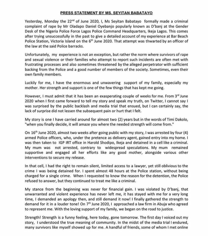 Society D’Banj’s Rape Mess Takes Another Turn As Accuser Reveals Timeline Of Assaults, Powerful Backers Published 6 years ago on June 24, 2020 By Society Now The rape accusation dogging Singer D’Banj (Dapo Oyebanjo) has taken another turn as accuser Seyitan Babatayo reveals the timeline of the alleged crime and subsequent attempts to cover up by the accused and his team. Related Topics:Dapo OyebanjoRapeseyitan Up Next Men’s Club!…All The Details As The Boys Hit Town Again Don't Miss Video: “I Am A Big Boy” – Fayose Declares Continue Reading Advertisement You may like Details: More People Move Against Baba Ijesha In Alleged Case Of Sexually Assaulting A Minor How Baba Ijesha May Escape Stipulated Life Imprisonment, If Found Guilty Of Sexually Assaulting A Minor Details As Ogun Commissioner “Suffers” For The Sin Of Colleague In Alleged Case Of Sexual Assault Details; El – Rufai Signs Law Stipulating Castration & Death For The Rape Of A Child Below 14yrs Details: Actress Victoria Inyama Advises Ladies On What To Do Since Govt ‘’Is Not Ready’’ To Take A Firm Stand On Penalty For Rape Singer D’Banj Cleared Of Rape Allegation As Accuser SeyitanWithdraws Petition ‘’For Personal Reasons’’ Click to comment Leave a Reply Cancel replyYour email address will not be published. Required fields are marked *Comment * Name * Email * Website Save my name, email, and website in this browser for the next time I comment. Captcha + 76 = 81 Powered by MathCaptcha Δ