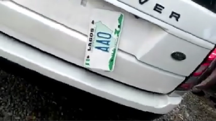 Urged on by others, one of those who surrounded Aremo Oniru removed the cover of his number plate accusing him of trying to avoid detection.