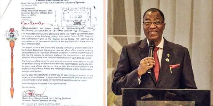 The Senator, Otunba Gbenga Daniel, representing Ogun East in the red chambers, has formally notified Ogun State Governor Dapo Abiodun of the Federal Government’s approval to commence construction of the Abigi-Makun-Omi Naval Base in Ogun Waterside Local Government Area.