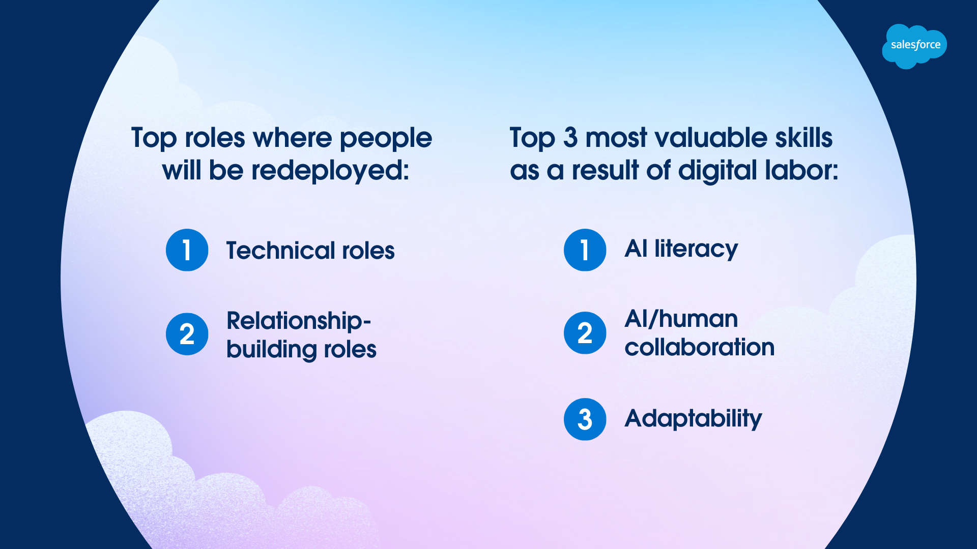 Salesforce perspective: “We’re in the midst of a once-in-a-lifetime transformation of work with digital labor that is unlocking new levels of productivity, autonomy and agency at a speed never before thought possible,” said Nathalie Scardino, President and Chief People Officer at Salesforce. “Every industry must redesign jobs, reskill and redeploy talent – and every employee will need to learn new human, agent and business skills to thrive in the digital labor revolution.”
