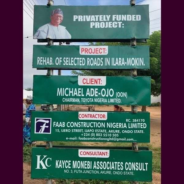 Chief Michael Ade-Ojo, the wealthy Nigerian behind Elizade Motors funded a 6-Kilometre road project in Ilara-Mokin, Akure, Ondo state.