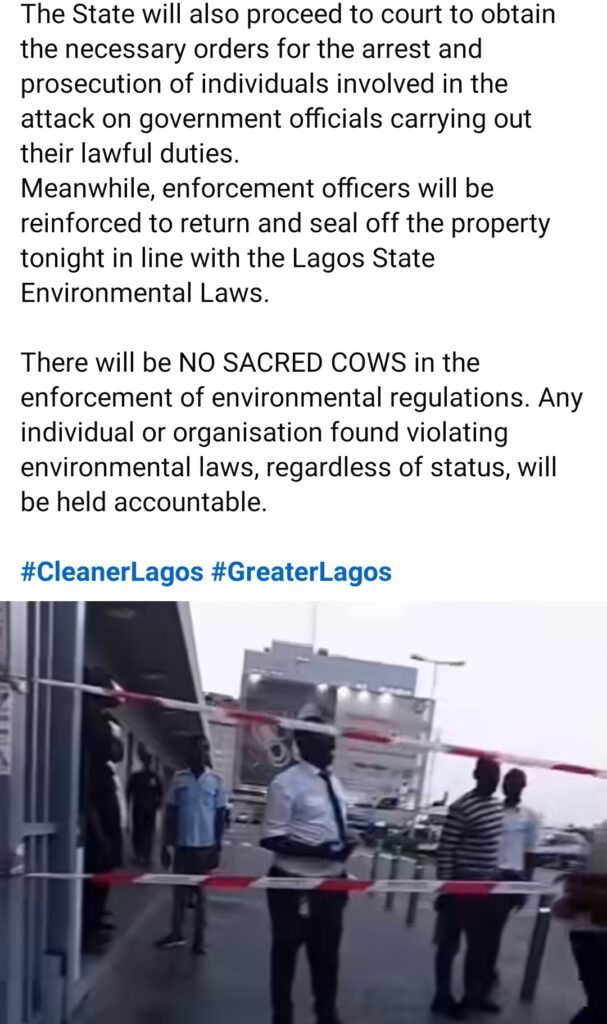 “During the enforcement visit, officials of LSWMO were denied access to seal the facility. Security personnel and management representatives of the bank resisted our officers and, in the process, attacked members of the enforcement team,” the top-level cabinet member alleged..