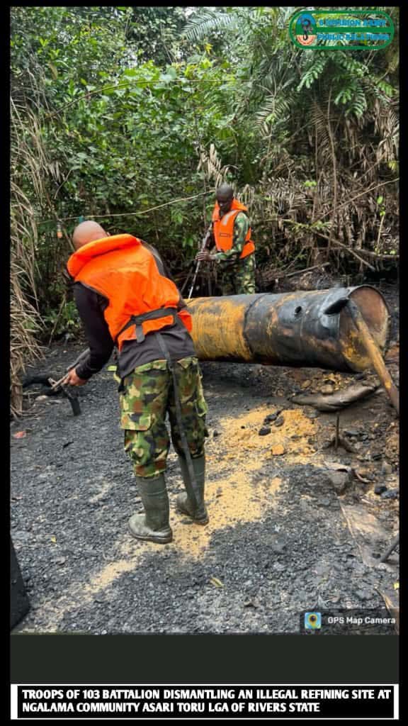 Similarly, in Delta State, around Eruemukohwarien in Ughelli North LGA, troops arrested three suspected oil thieves and impounded a J5 bus and one motorcycle, recovering over 4,000 litres of condensate. Also, at Bipoko Community in Warri South LGA, troops discovered an active illegal refining site with a cooking oven and thirty-eight sacks filled with over 1,140 litres of stolen crude oil.