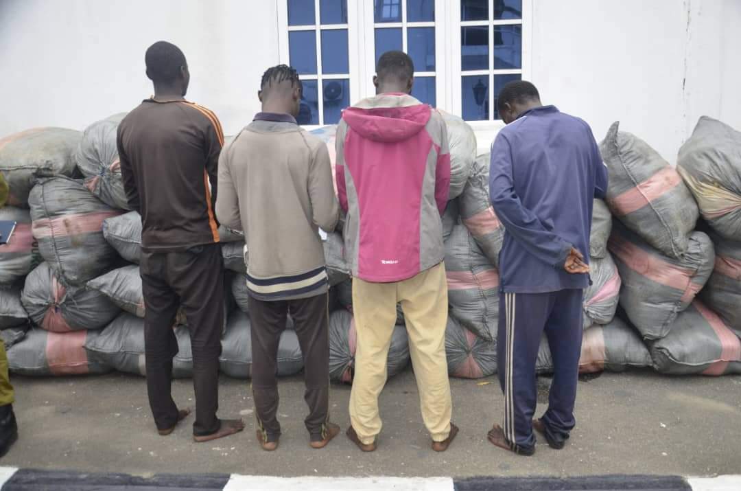 Nigerian Navy Ship (NNS) BEECROFT handed over 72 bags of cannabis sativa, each weighing 40 kilograms and 4 suspects comprising of 3 Ghanaians and a Beninois to National Drugs Law Enforcement Agency (NDLEA) Marine Command on Tuesday 27 August 2024.