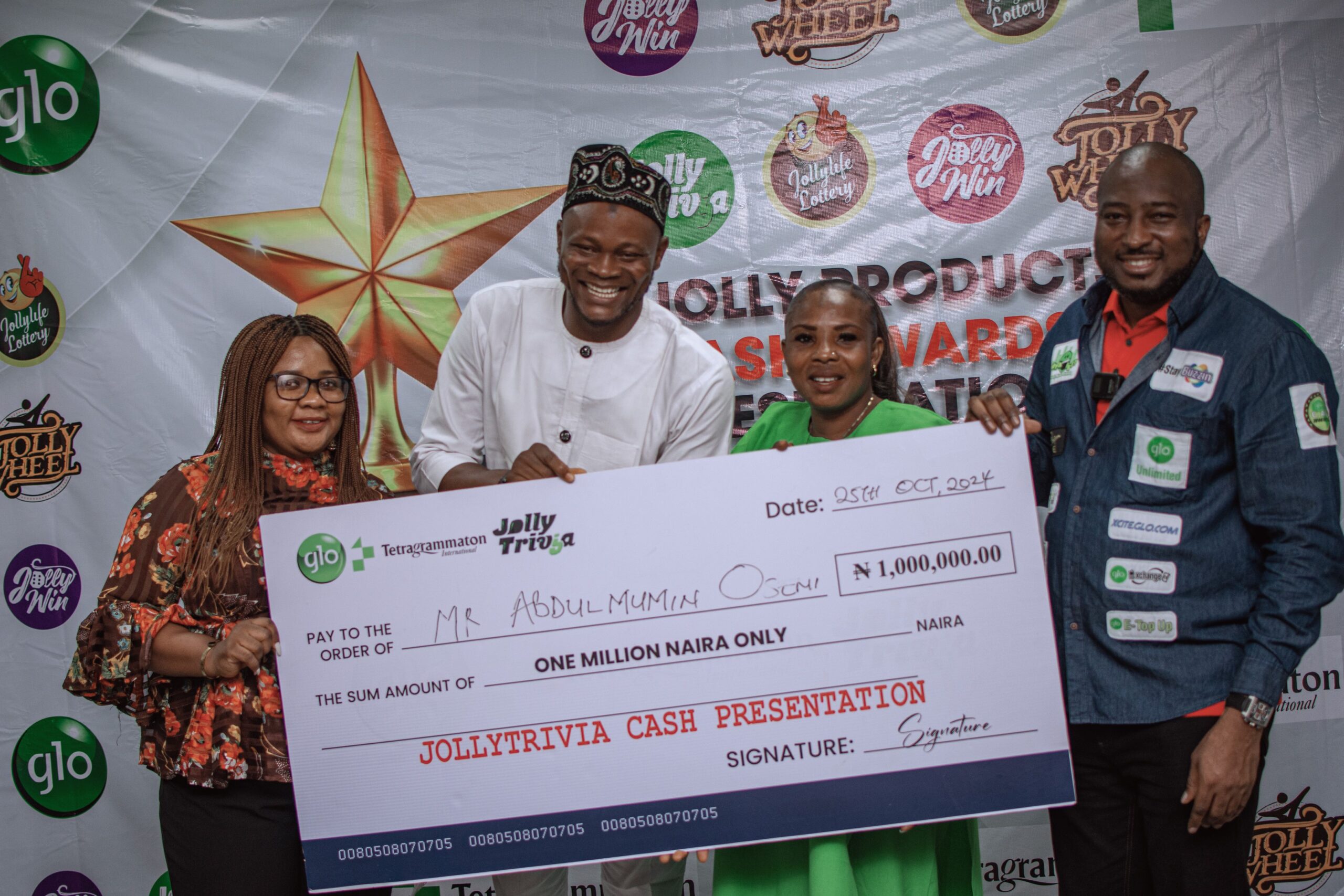 Globacom and its partners have presented cheques of N1m each to new set of winners in the exciting monthly Glo Jolly Win promo. This is apart from the airtime and data rewards received daily by other Glo subscribers who participate in the promo.