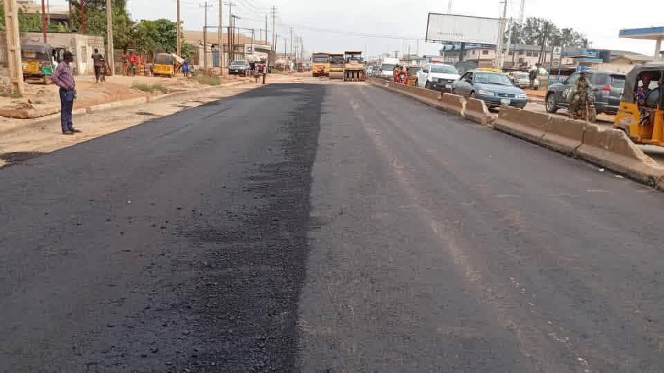 In Sango Ota, asphalt laying of both the binder and wearing courses has been completed in front of the Matrix petrol station on the right-hand side, while the wearing course has also been laid on the outer lane at Obada Oko.
