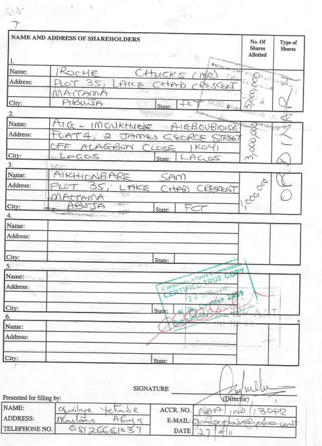The firm’s helms man, Chuks Iroche just proved that the Aig Imoukhuede listed as part owner of the company is another person.