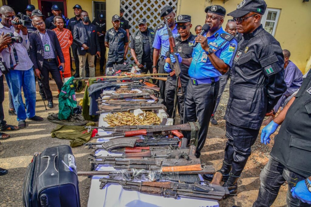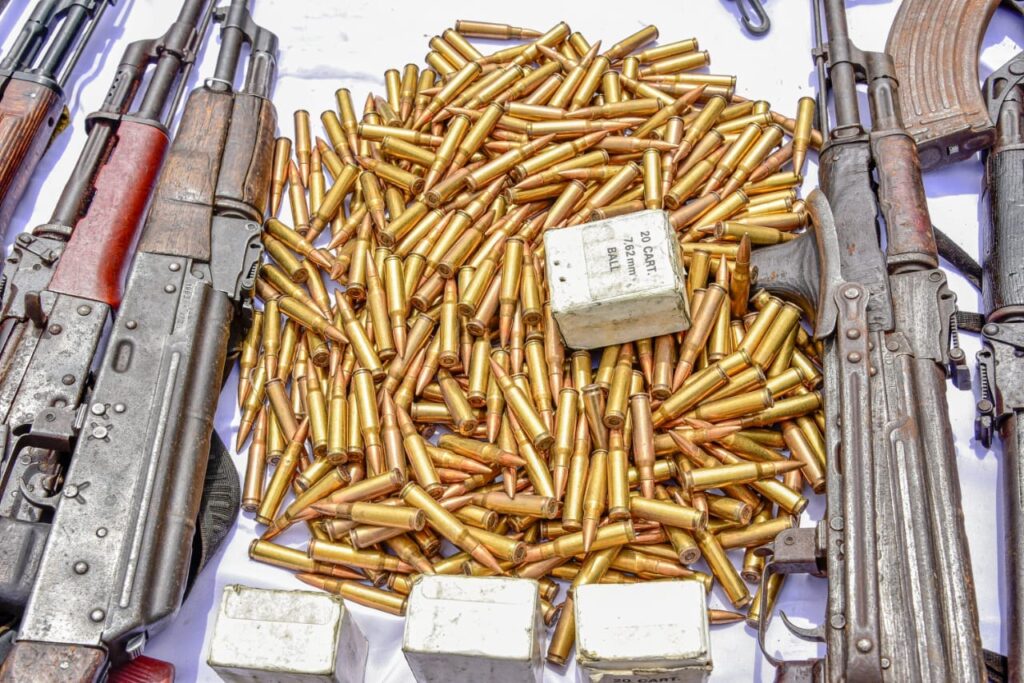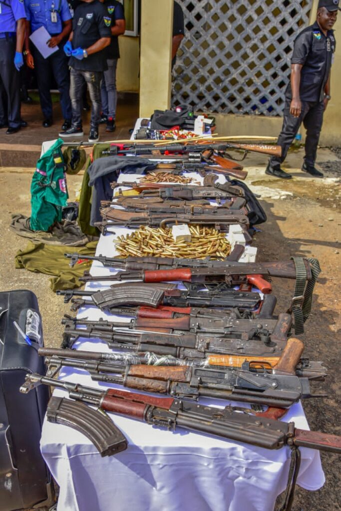 Also, a gang comprising Ibrahim Shehu aged 30, Ibrahim Ardo aged 32, Ibrahim Amodu aged 50, Ibrahim Mohammed aged 50, and Ayo Johnson aged 30 were arrested for their role in supplying arms and ammunition to armed militias and bandits operating within the North Central region. 1 AK-47 rifle, 3 AK-49 rifles, 80 rounds of live ammunition, and 57 rounds of 7.62 mm live ammunition were recovered from the suspects.