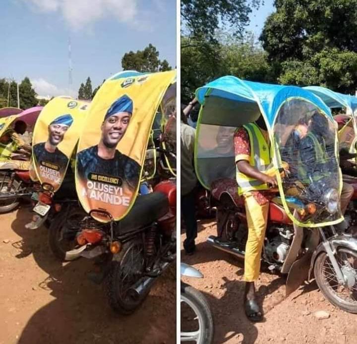Eniola Ajayi Commercial Motorcycles which are better known as Okada in Oyo state now have a new look. The upper part now adorns a cover that...