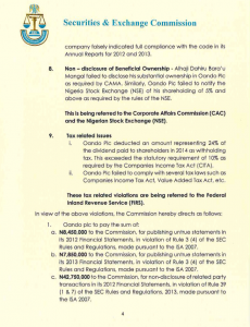 Business The Full Details Of SEC’s Sanction Of OANDO’s CEO Wale Tinubu, Deputy Mofe Boyo & 8 Directors! Published 7 years ago on June 3, 2019 By Society Now Here are the finer details of the sanction by the Securities and Exchange Commission that is rocking the leadership of OANDO. Related Topics:Mofe BoyoOandoSECSecurities & Exchange CommissionsocietynowWale Tinubu Up Next Details As Alake Oba Adedotun Gbadebo, Ike Osakwe, 6 Other Directors Ordered To Refund N150M OANDO Benefits Don't Miss Wale Tinubu, Mofe Boyo Kicked Out Of OANDO In Midst Of Heavy Sanctions! Continue Reading Advertisement You may like Details: SEC Approves Nigeria’s First Naira-Denominated Private Debt Fund Tinubu Appoints New Board For Securities & Exchange Commission Insecurity: Lagos Assembly Tells Sanwo-Olu To Employ More Neighborhood Watch Officers Capital Market Operators Get Deadline To Renew Registration Shareholders Get Major Win To Help OANDO Management Regain Control Of Company All The Details As I-invest Opens Equities Market To More Nigerians Click to comment Leave a Reply Cancel replyYour email address will not be published. Required fields are marked *Comment * Name * Email * Website Save my name, email, and website in this browser for the next time I comment. Captcha 86 − 84 = Powered by MathCaptcha Δ