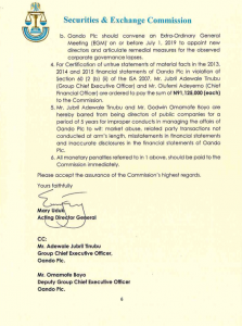 Business The Full Details Of SEC’s Sanction Of OANDO’s CEO Wale Tinubu, Deputy Mofe Boyo & 8 Directors! Published 7 years ago on June 3, 2019 By Society Now Here are the finer details of the sanction by the Securities and Exchange Commission that is rocking the leadership of OANDO. Related Topics:Mofe BoyoOandoSECSecurities & Exchange CommissionsocietynowWale Tinubu Up Next Details As Alake Oba Adedotun Gbadebo, Ike Osakwe, 6 Other Directors Ordered To Refund N150M OANDO Benefits Don't Miss Wale Tinubu, Mofe Boyo Kicked Out Of OANDO In Midst Of Heavy Sanctions! Continue Reading Advertisement You may like Details: SEC Approves Nigeria’s First Naira-Denominated Private Debt Fund Tinubu Appoints New Board For Securities & Exchange Commission Insecurity: Lagos Assembly Tells Sanwo-Olu To Employ More Neighborhood Watch Officers Capital Market Operators Get Deadline To Renew Registration Shareholders Get Major Win To Help OANDO Management Regain Control Of Company All The Details As I-invest Opens Equities Market To More Nigerians Click to comment Leave a Reply Cancel replyYour email address will not be published. Required fields are marked *Comment * Name * Email * Website Save my name, email, and website in this browser for the next time I comment. Captcha 12 + = 19 Powered by MathCaptcha Δ