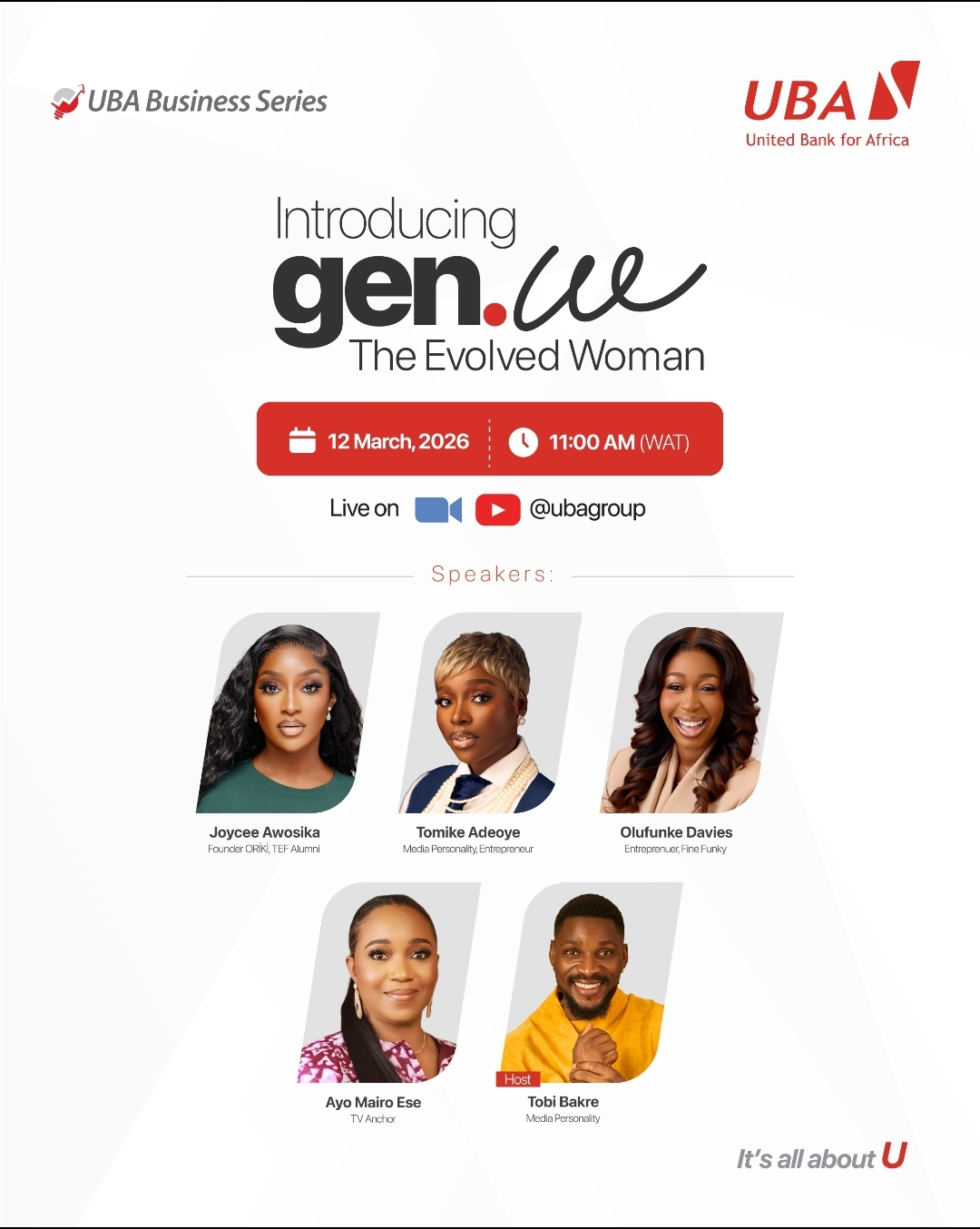 Africa’s Global Bank, United Bank for Africa (UBA) Plc, is set to host a special edition of its impactful quarterly UBA Business Series, which be specifically focused on celebrating and empowering the modern woman with the theme: “gen w- ‘The Evolved Woman’
