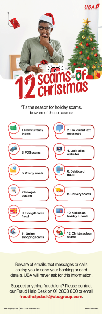 The yuletide period is usually associated with all manners of tricks by scammers adept at separating people from their money. UBA’s “12 Scams Of Christmas” raises huge awareness of possible point-of-contacts with the con artists and limits the chances of the nefarious characters making many cry.
