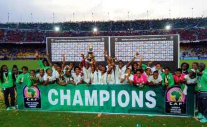 The team returned from Yaoundé on Sunday morning after winning their eighth African Women Nations Cup title by beating the hosts, Lionesses of Cameroon, 1-0 on Saturday.